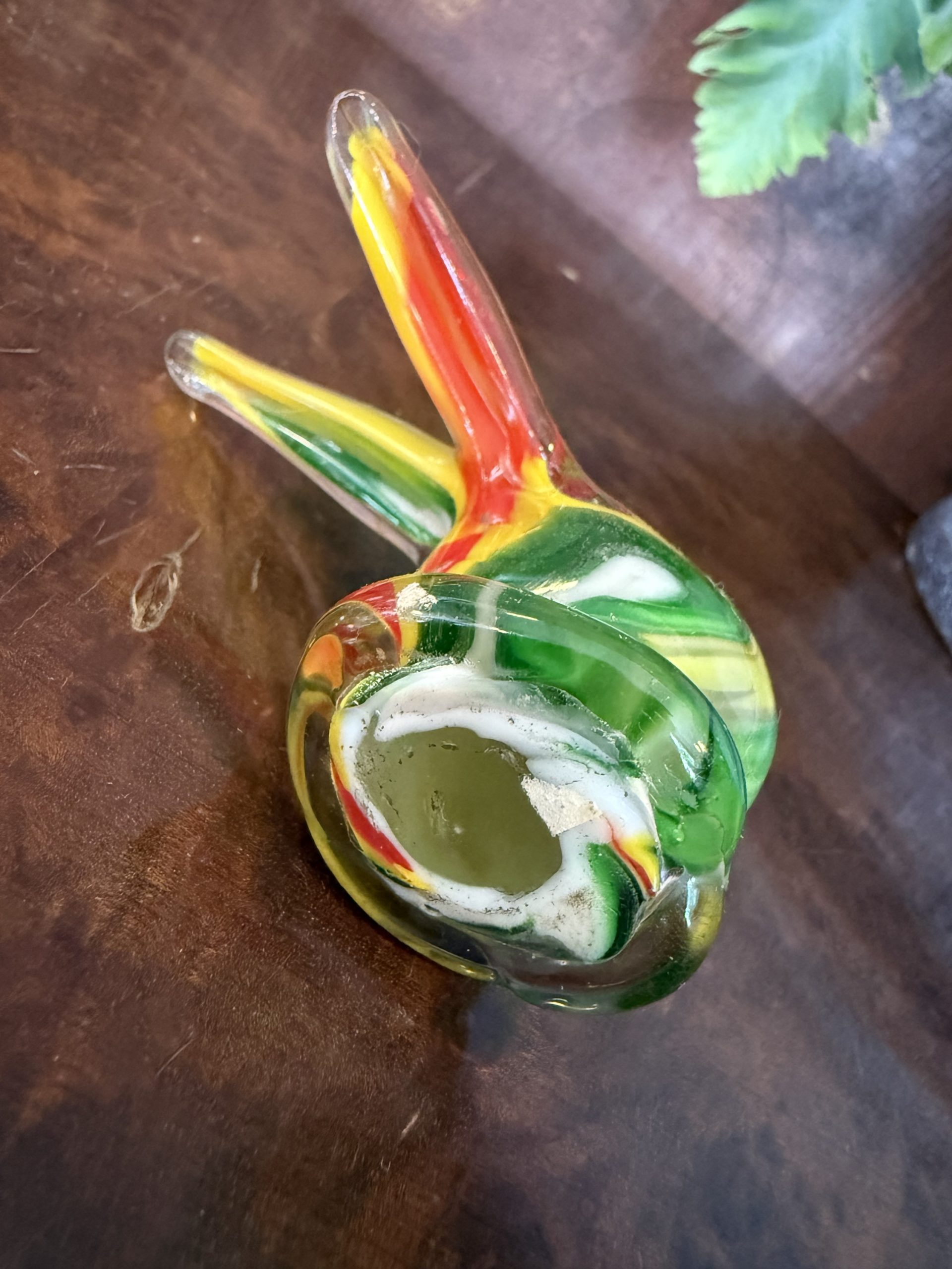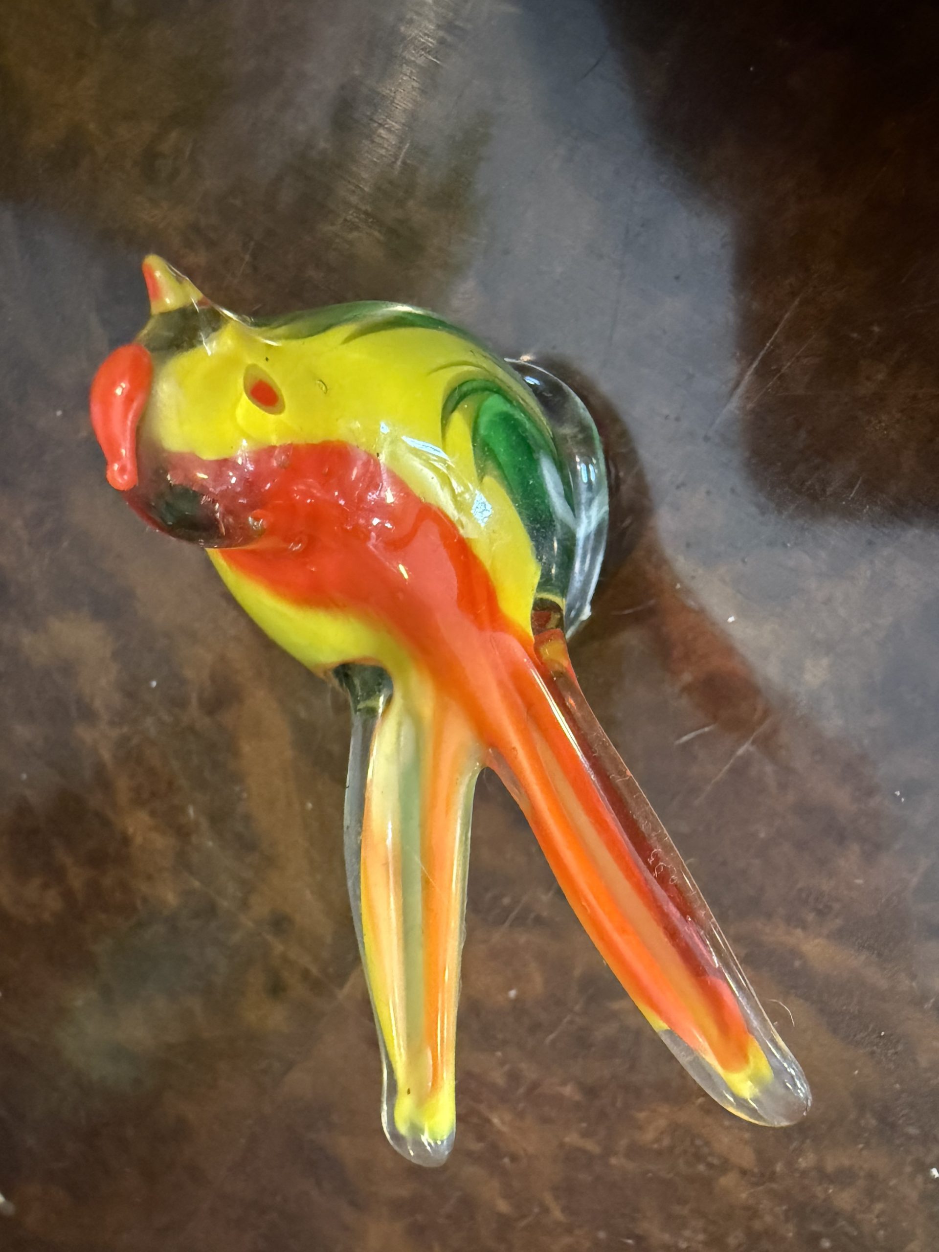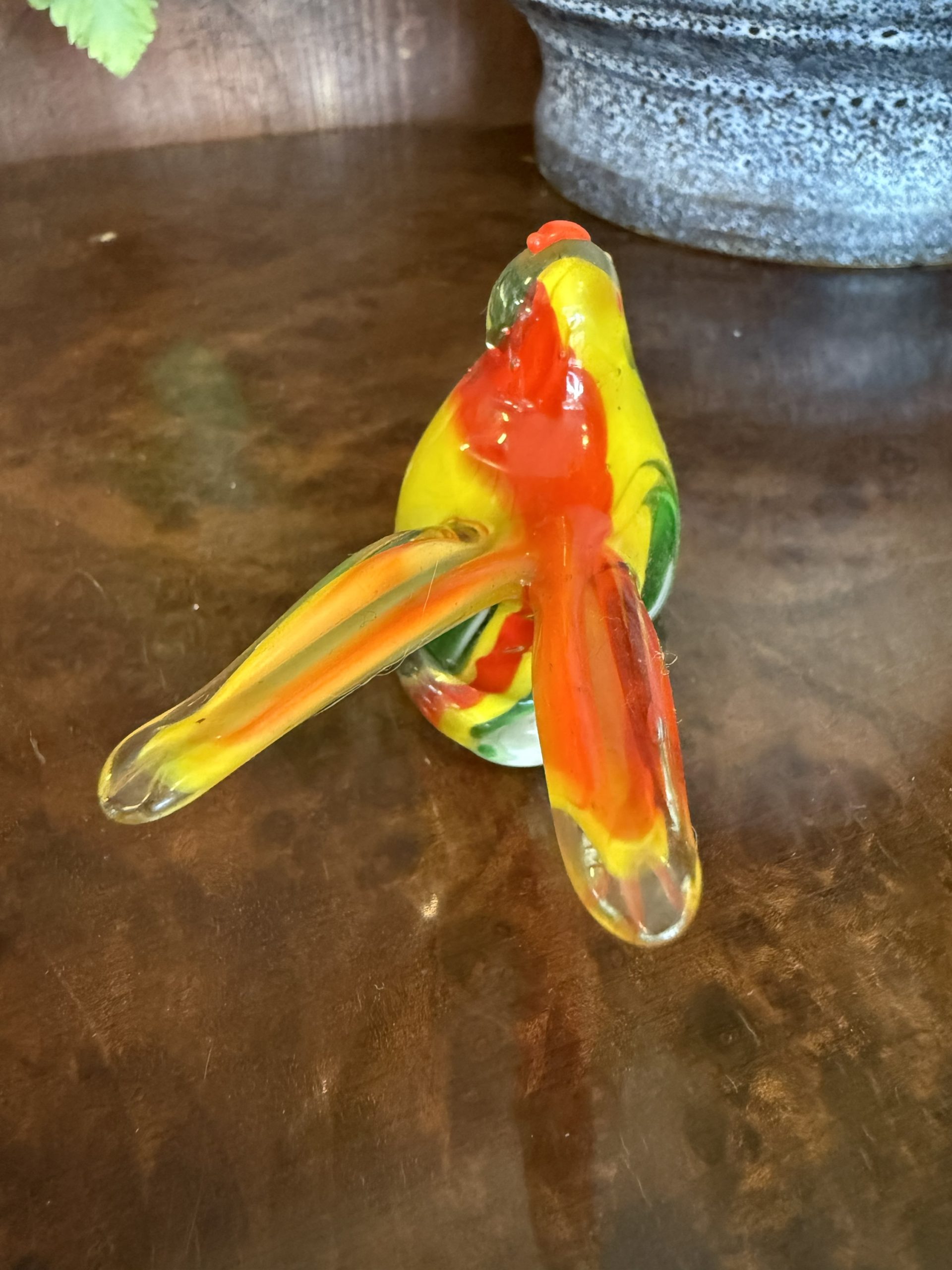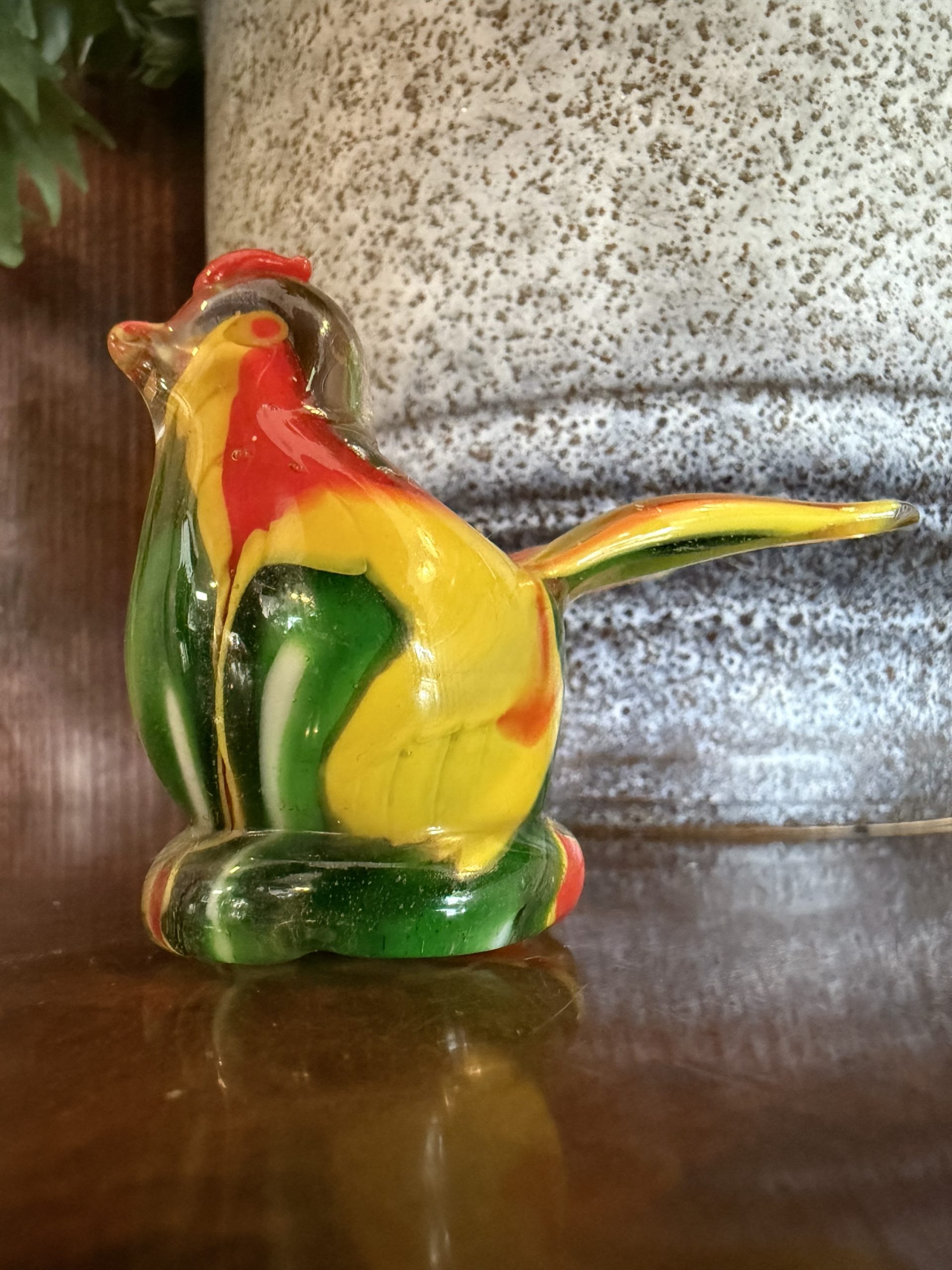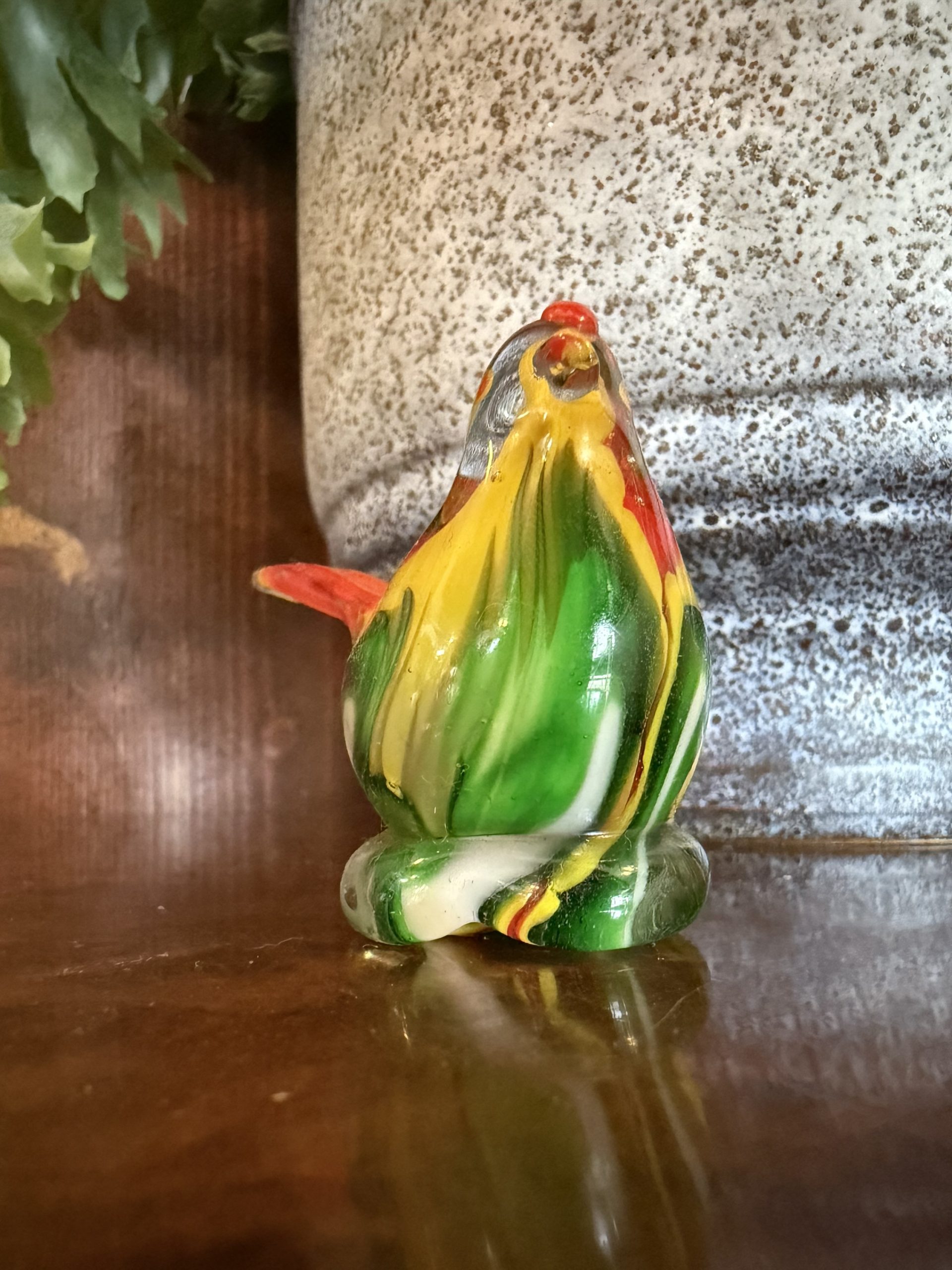 Decoratief glazen vogeltje in prachtige mooie, vrolijke kleuren.