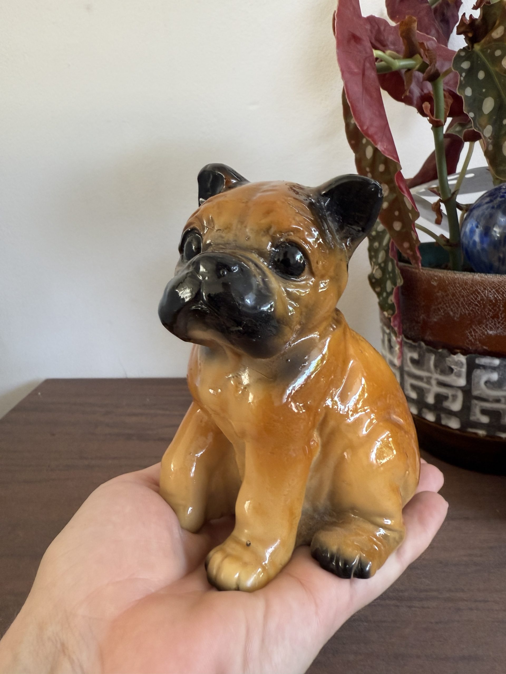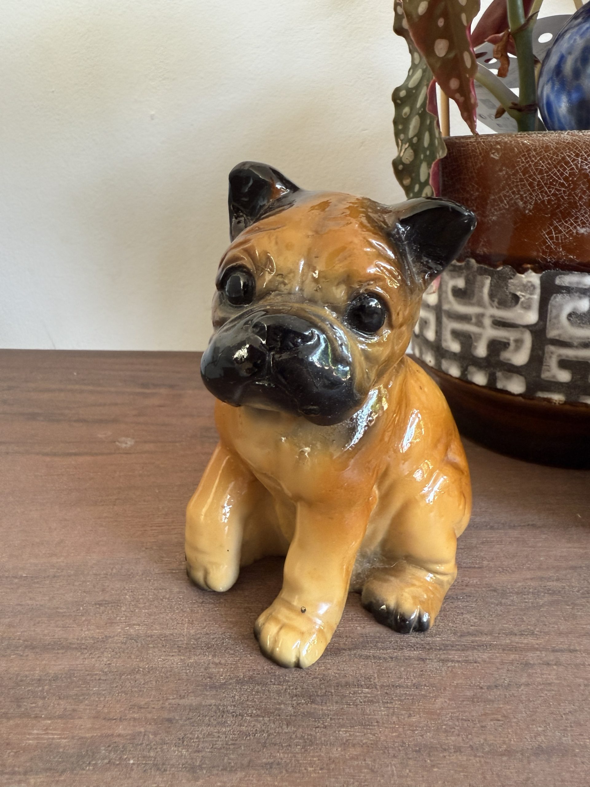 Frans hondje Boxer, keramieken beeldje uit de jaren ’80.