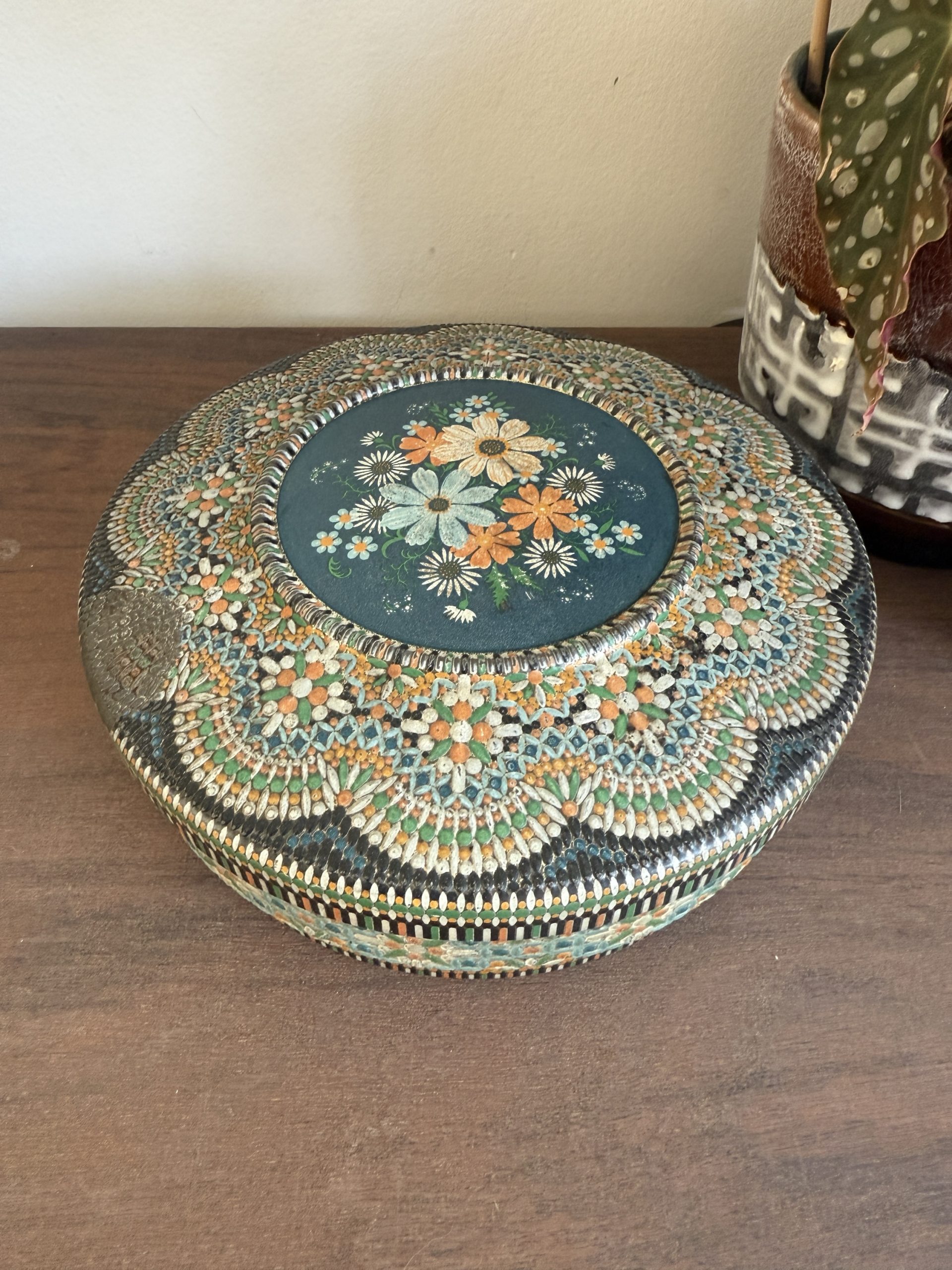 Prachtig mooie Vintage Koektrommel, z’n eentje waar je de koekjes uit kreeg als je bij opa en oma op visite was.